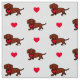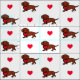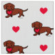 Rött släta haired taxtyg. Den Doxie valpen levererar en hjärta. Cheery och stollig och rolig hund konst som skapas av Naomi Ochiai från Japan. Gullig taxtecknaddesign för hund älskare som älskar Doxie!!