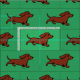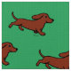 Ett förtjusande rött slätar den haired taxvalpen är rinnande med glimtögon. Taxtyg i grön färg. Cheery och stollig och rolig hund konst skapade vid Naomi Ochiai från Japan. Gullig taxtecknaddesign för hund älskare som älskar Doxie!!