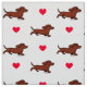 Rött släta haired tyg för taxvalpmönster. Doxie spring med glimtögon. Cheery och stollig och rolig hund konst skapade vid Naomi Ochiai från Japan. Gullig taxtecknaddesign för hund älskare som älskar Doxie!!