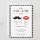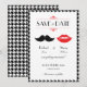 Läckra röda läppar och en elegant mustasch är de viktigaste inslagen i denna moderna & eleganta bröllopsinbjudan. Houndstooth-mönstret i bakgrunden ger en otvungen retro-charm.