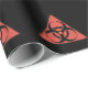 Röd och svart triangulär biofarlighet på svart bakgrund