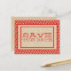 Chic och modernt Trendig Rand Spara det vykort för datum som innehåller en komplex papper synbakgrund och en snyggt som har ruttnat gräns i rött. Den här utformningen är ett enkelt val för trendiget att tillkännage ditt kommande bröllop. Enkel att anpassa, lägg bara till information om bröllop. Klicka på Anpassa om du vill söka efter fler anpassningsalternativ.