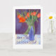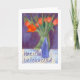Ett födelsedagkort med "grattis på födelsedagen" i holländare och en vas av röda tulpan från en olje- pastellfärgad målning av Judy Adamson. Jag kan lätt ändra beklädatexten på begäran, och insidan är vänstersida som är tom för ditt egna meddelande.