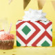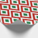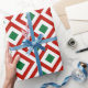 Detta sätta en klocka på rött, grönt, och är det geometriska mönster för vit en original- dekorativ designperfekt för jul. Röda slingringar metar runt om vitdiamanter som innehåller lilla gröna diamanter. Vitsicksackar ger avskiljande mellan de slingriga crimson vägarna.