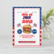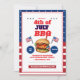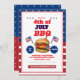 Röd, vit och blå 4:e juli-sommarinbjudan! Perfekt för bak- och ankarplatser på bakgården, cookouts eller patriotiska familjemöten, detta festliga inbjudan har klassiskt Americana färg och picknick-inspirerad inslag som anger tonen för ett stjärnspäckat firande.