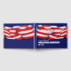 På framsidan och baksidan av den designade gästen bok i pension finns röd, vit och blå buntning längs överkanten över en mörk blått bakgrund. Fyll i fält i mallen för eventuell gäst-bok-händelse som krävs. Du kan också ta bort vilken text som helst eller redigera med hjälp av verktyg för att markera ett teckensnitt färg, stil och storlek som du föredrar.