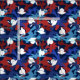Kamouflage studenten väv i fält av rött och blått och mönster av vita studentmössor.