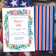 Tittar du för en patriotisk 4:e juli-bröllopsinbjudan? Titta på vår Rött vitt blått Rand 4:e juli-inbjudan till patriotiska bröllop! Den här fjärde bröllopsinbjudan från juli har vackra röda och blå blommigtar med den amerikanska flagga. Den här bröllopsinbjudan är vacker för en bröllop på Independence day. Du kan anpassa texten.