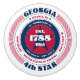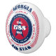 Dekorera ditt hem eller företag med den här unika keramiska knoppen som har en röd, vit och blå cirkelformad typografi med fakta om den amerikanska staten Georgien. Det blev en stat 1788 och är den fjärde stjärnan. Dess huvudstad är Atlanta och dess förkortning är GA. Andra intressanta fakta är dess region, zona tidskoordinater, geografiska koordinater och namn.