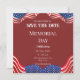 Meddela din patriotiska sammankomst i stil med den röda och vita eleganten Memorial Day firande att spara datumkortet. Perfekt för grillfester, ceremonier eller familjeevenemang - ange tonen för en meningsfull och minnesvärd helgdag.