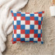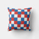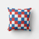 Elegant och unik kastkudde med rött vitt och blått rutigt mönster.