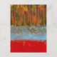 Ett abstrakt som skildrar en skog med många träd och en kropp av vatten, kanske bäck, flod eller sjö, fylld med skrapor i vågar tillsammans med scarlet rött i förgrunden. En samling varmt färg på höstens naturscen för älskare utomhus.