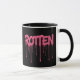 This mug features the word ROTTEN in gooey, dripping pink letters—because your coffee deserves a little attitude.