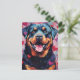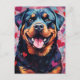 En färgrik Alla hjärtans dag-design med en Rottweiler.