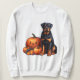 Rottweiler Hund Sitta av Halloween Pumpkins Lång Ärmad Tröja