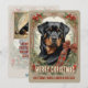 En vintage stil-julkort med en ruttweiler hund. Lovade av alla ruttweilers som har minst en människa i familjen. Texten längst fram, texten i bakmeddelandet och bakbilden kan vara personlig eller lämnat i befintligt skick.