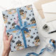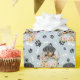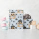En ynklig liten rottweilervalp som lägger sig i ett blomdekorerat torktumlare basket är kännetecknet i mönster på tillfällens gåva som är papper. Porträtt ligger mitt i mönster på svart tass avtryck och vita ben och upprepas med silver blå bakgrund. Perfekt för Rottweiler Hund älskare!