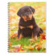 Rottweiler Puppy Sitta i Höst löv Anteckningsbok Med Spiral