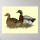 Rouens är stort anka med ett färg mönster som liknar Mallards. Drake glansigt grönt huvud står ut, men hönsens penciderade fjädrar är vackert förklädda.
