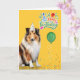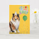 Rough Collie Dog Party Hat Yellow Birthday Kort