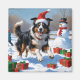En graciös Rough Collie springer glatt genom det snöiga vintersceneriet, iförd en festlig röd julhatt. Denna charmiga design framhäver rasens flödande päls, intelligenta ögon och milda personlighet samtidigt som den fångar värmen och glädjen under julen. Ett hjärtvärmande vinterögonblick fullt av festlig glädje.