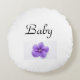 En söt kudde för daghemmet, denna kudde är rund och säger ord "Baby", där det finns en liten liten bild av en violett.