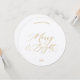 Send warm holiday wishes with this round Christmas card featuring elegant gold script and a festive heart-shaped ornament on the back. The charming circular shape makes it a unique keepsake for friends, family, or colleagues. Perfect for adding a touch of elegance and love to your holiday greetings.