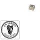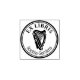 En rund Ex Libris gummi frimärke-formgivning med fetstilta kanter och prickade ram med harpmotiv.