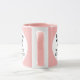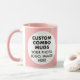 Round PINK double image frame custom Combo Mug for photo or logo, 11 oz., 3.2" diameter x 3.8" high, with PINK background double image frame (two individually customizable design areas) providing maximum coverage of the mug in PINK. See store for more templated font options. The background color has been chosen to closely resemble the combo mug inside and handle color but may not match exactly, due to the difference between printing and enamel tones.
