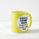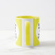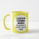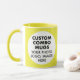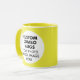 Round YELLOW double image frame custom Combo Mug for photo or logo, 11 oz., 3.2" diameter x 3.8" high, with YELLOW background double image frame (two individually customizable design areas) providing maximum coverage of the mug in YELLOW. See store for more templated font options. The background color has been chosen to closely resemble the combo mug inside and handle color but may not match exactly, due to the difference between printing and enamel tones.