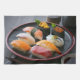 The beautifully arranged sushi is accentuated by the red-rimmed dish, creating an artistic dish that will make an impact on your dining table.