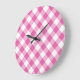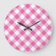 En chic Round Wall Clock, med söt, diagonalt placerad Rosa and White Check Gingham mönster; från Posh & Painterly "Primroses"-samlingen. Checkgingham mönster passar alla klockstorlekar.