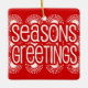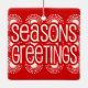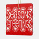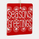 This unique design by birdy27 features a bold red background and a classic "Seasons Greetings" message, accented by subtle, circular patterns for a modern holiday feel. The versatile rounded square shape adds a fresh touch to your decor.