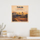 This premium Route 66 poster celebrates Tulsa, Oklahoma, the historic gateway to the Mother Road. The artwork features a stunning perspective of the city skyline at sunset, with the iconic highway shield positioned prominently along the winding road. Rendered in a nostalgic, textured style that honors the 100-year anniversary of American road travel, this high-quality poster is a must-have for historians and Americana enthusiasts. This professional-grade poster is designed with a weathered, vintage finish, making it a sophisticated addition to any home office, gallery wall, or living room. Commemorate the 1926-2026 milestone with this striking tribute to the city where the idea for the legendary 2,448-mile journey was born.
