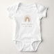 Denna flicka boho regnbåge graviditetsannonsering baby bodysuit från Rowan Collection är perfekt för en enkel baby shower och för babyannonseringsfoton. Denna söta minimalistiska design har en unik neutral ljusrosa och guldregnbåge och är perfekt för vår eller sommar.