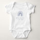 Denna baby-boho regnbåge graviditetsbekännelse baby bodysuit från Rowan Collection är perfekt för en enkel baby shower och för foton på bebisens ankomst. Denna söta minimalistiska design har en unik ljus blekblå och vit regnbåge och är perfekt för våren eller sommaren.
