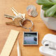Rowbåt på lilla sjö omgiven av vatten fyrkantig silverfärgad nyckelring