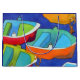 A gift bag decorated with colourful fun rowing boats on a deep blue sea.