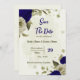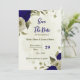 Royal blå blommor botaniska bröllop spara datumet