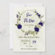 Vackert romantiskt bröllop räddar inbjudan med kungligt blått och beige blommor och vissa blad. OM DU VILL HA MER MATCHING PRODUCTS klickar du på samlingen ovan eller kontaktar mig