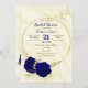 elegant romantiskt royal blåa blommor och guld löv botaniskt lyxliv inbjudningskort för möhippan glitter-uppgifterna simuleras