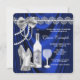 Royal blå och silver åldrad till perfektion födelsedagsinbjudan med höga klackar skor vinflaska och vinglas och pärlband på en vacker lyxig royalblå sammetsbakgrund. Denna eleganta royalblå födelsedagsinbjudan för kvinnor är lätt att anpassa för din fest eller händelse genom att lägga till dina händelse detaljer, teckensnitt stil, teckenstorlek och färg, och formulering. Du kan ändra texten på flaskan för din händelse.