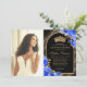 Royal Blå Svart Guld Blommig Foto Quinceanera Inbjudningar
