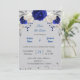 royal blå vita blommor grått löv spara datumet inbjudningar