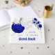 Romantiskt royal blå och vita blommor med silver löv botaniskt bröllop gäst bok. Närmare uppgifter om glitter simuleras.