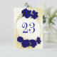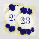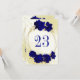 Vackert kort för bordsnummer i bröllop med Royal blåa blommor och guld löv. Uppgifterna om guld glitter simuleras. MER MATCHING PRODUCTS FINNS i samlingen ovan eller kontakta mig