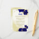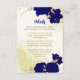 Vackra bröllop-detaljkort med Royal blåa blommor och guld löv. Närmare uppgifter om guld glitter simuleras. MER MATCHING PRODUCTS FINNS i samlingen ovan eller kontakta mig