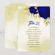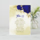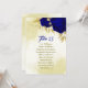 Ett vackert bröllop-platskort med Royal blåa blommor och guld löv. Uppgifterna om guld glitter simuleras. MER MATCHING PRODUCTS FINNS i samlingen ovan eller kontakta mig