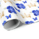 Denna pappra elegant och sikthaltiga inslagning är mångsidig och kan användas för ge gåvor eller konstprojekt och hantverksprojekt. Det är perfekt för födelsedagar. Utformningen har vattenfärgen royal blåa blommor, fjärilar och guld krona.