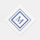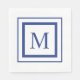 Royal blått och vitt kvadratiskt gräns monogram pappersservett